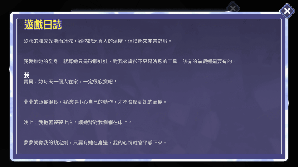 前略,各位讀者生魚好。雖然”情趣娃娃變成人”這個直白又炸裂的標題,可能很容易讓人認為本作是款拔作,不過意外的是,本作其實是個相當講究劇情的作品,內容中的許多鋪陳與情緒堆疊都很優秀。也因為這樣,今天的介紹會很高度地著重在劇情部分,難免有一定程度的劇透,若是很注重劇情體驗的玩家或許可以考慮跳過本文,直接去玩玩看可能是更好的選項。